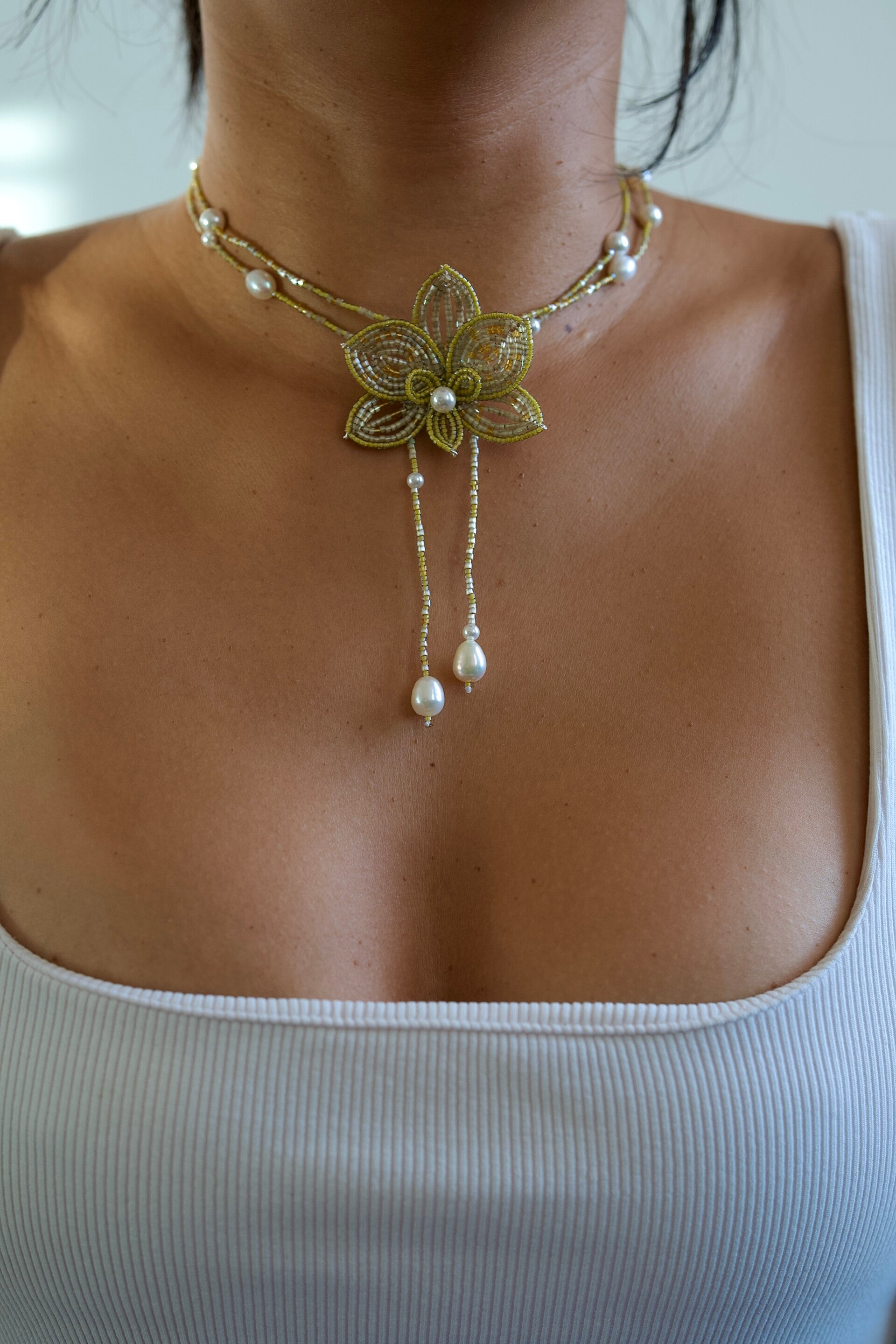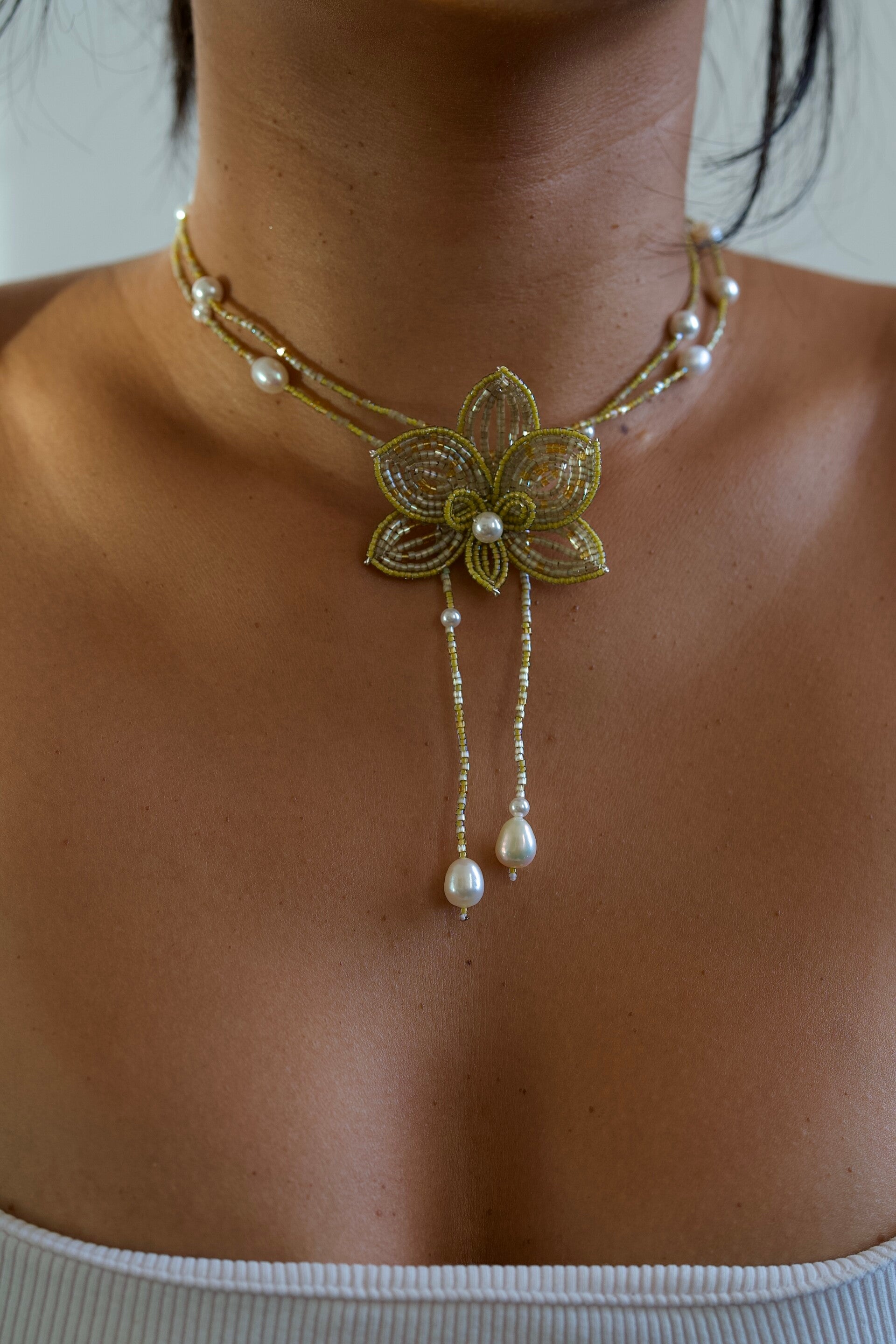 Beaded orchid necklace