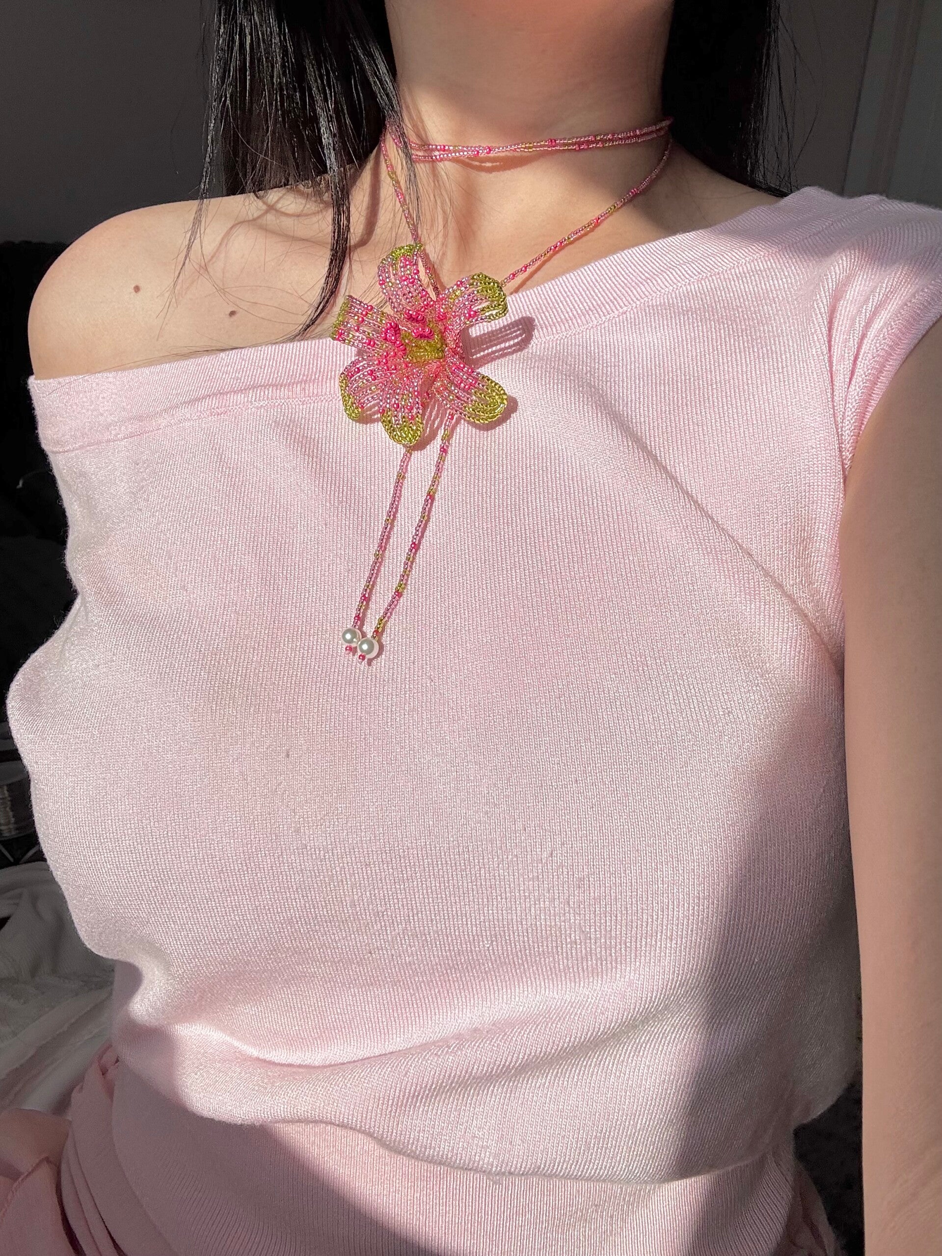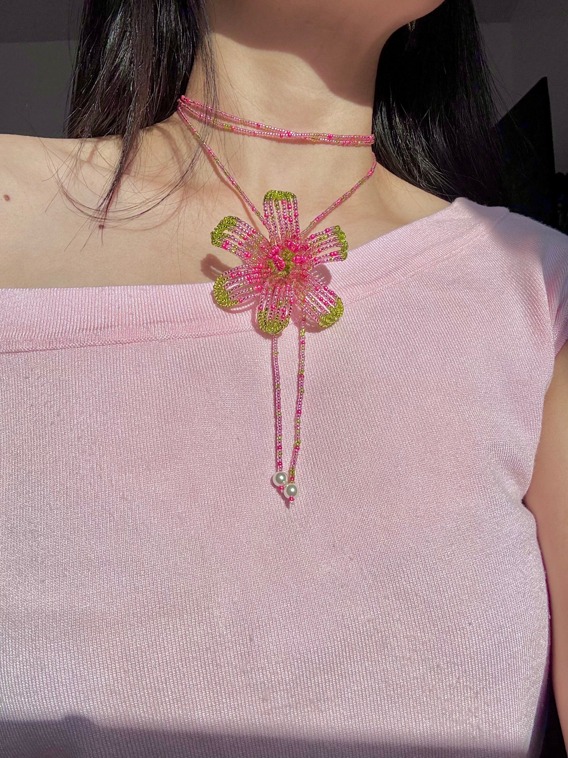 Beaded Orchid Necklace